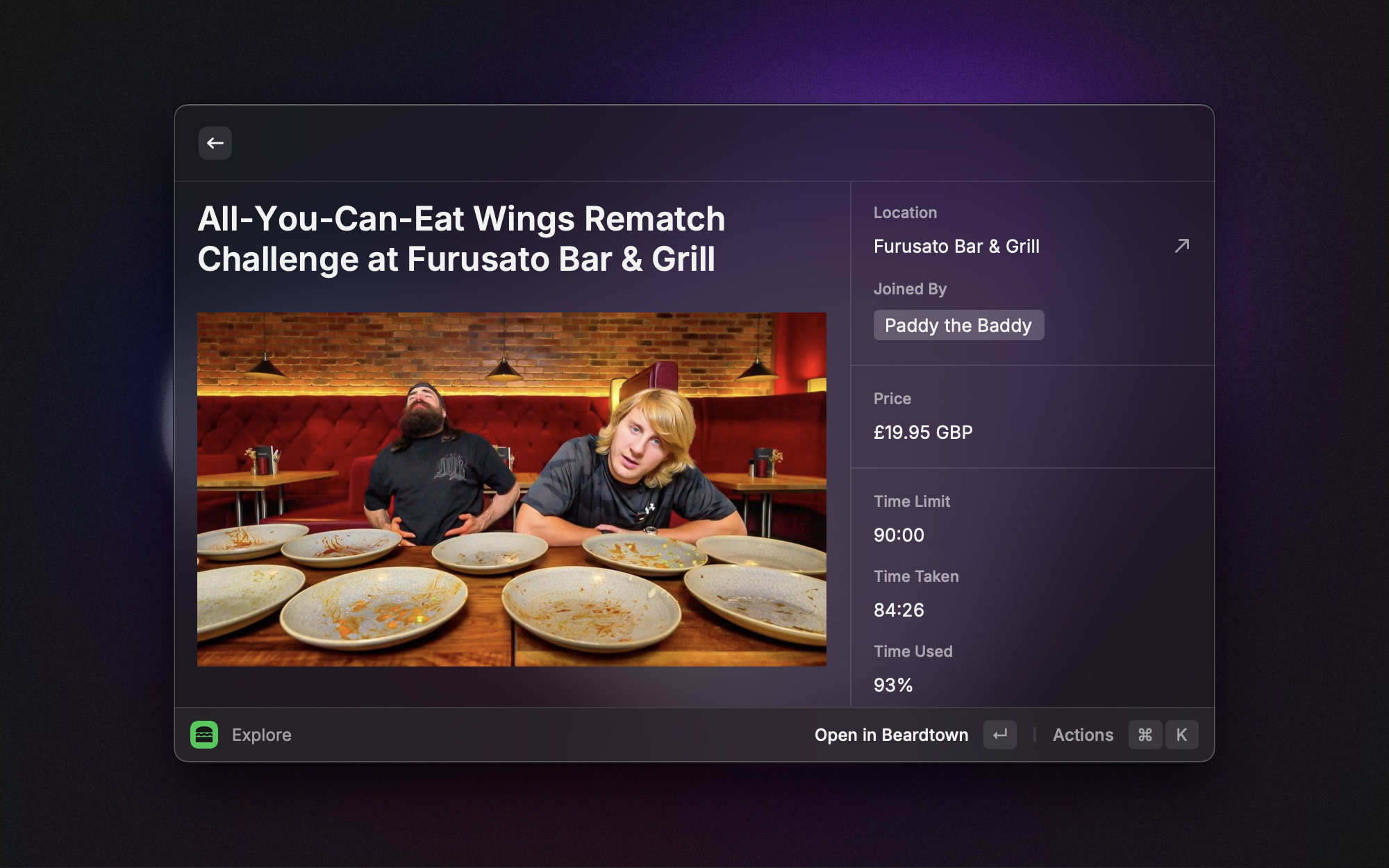 Challenge stats and info about Adam Moran, the UK's hairiest competitive eater. For Raycast. For some reason.